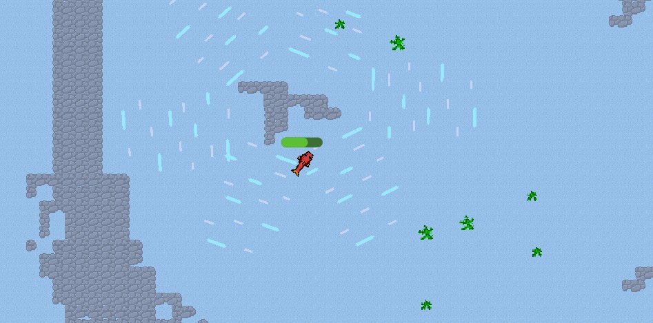 You are a fish who must proceed through your life cycle, collecting food and migrating. But other, competing fish are here to stop you! Blast them with your mysterious fiery projectiles before they end your genealogical line, or escape them - either way, you must reach the breeding ground and make ever stronger fish. But beware, they will evolve alongside you....